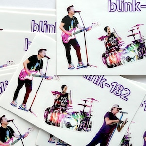 Pop art graphic I made of Tom DeLonge jumping with his Fender Stratocaster in the early days of blink-182. 2” x 2” clear vinyl sticker that stays on water bottles even when wet.